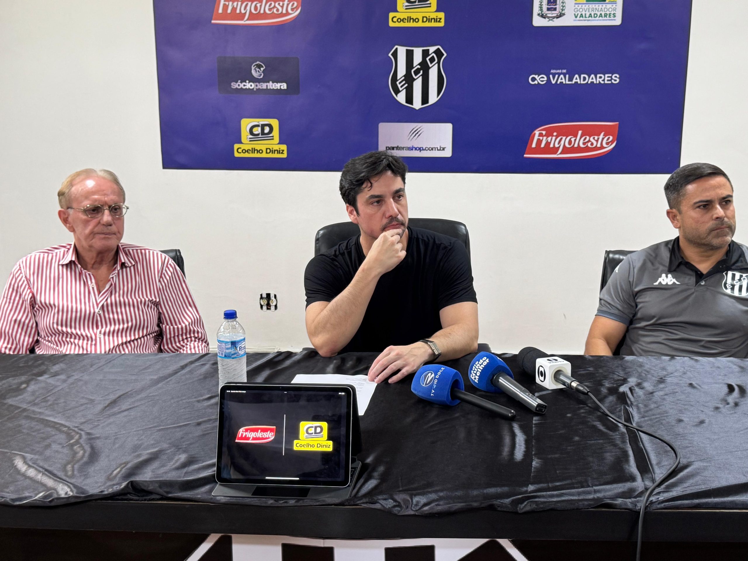 Nesta quarta-feira (11), o Democrata-GV realizou uma entrevista coletiva para apresentar oficialmente o técnico Cícero Júnior, que assume o comando da equipe para a disputa da Série D. O encontro também contou com a presença de Gustavo Perrella e Edvaldo Soares, integrantes da SAF do clube.